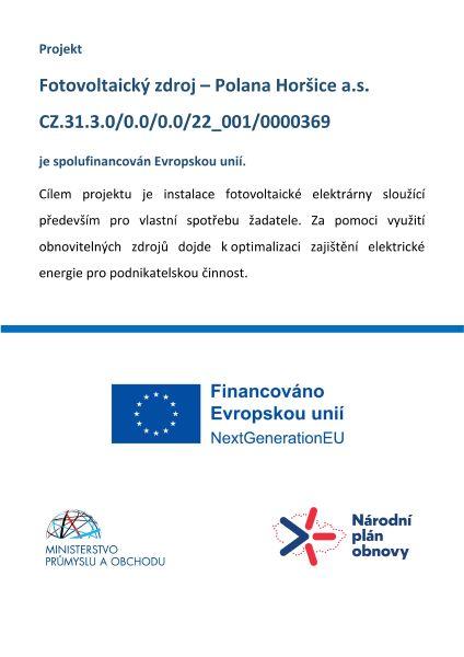 Název projektu: Fotovoltaický zdroj - Polana Horšice a.s.